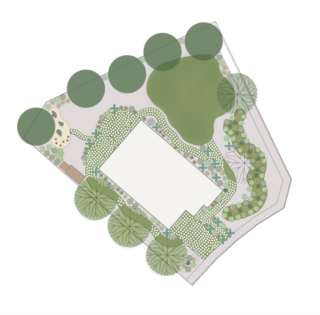 The design intent for my studio project was to design a sustainable, energy efficient residential landscape fit for families and children’s growth in mind, while honing in on river-friendly elements. In The Field article, “The Evolving Practice of Ecological Landscape Design”, the author states that landscape architects are now embedding sustainability and ecological practices within their projects. We are moving forward from picking plants to use in our planting designs that solely reflect the concept and aesthetic of the design, rather than consciously picking plants that work well on the site; in regards to the soil type present, amount of sun needed, etc. Designing with ecological factors in mind ensures the longevity of the site, while also creates a energy efficient site that will be easy to maintain. I have implemented a bio-retention swale on my project site. Upon further research, I have found plants that work well for our site’s location (Visalia, CA), alongside, plants that work well for a swale. Finding the right plants is essential for a swale, choosing plants that may tolerate being submerged in water for periods of time.